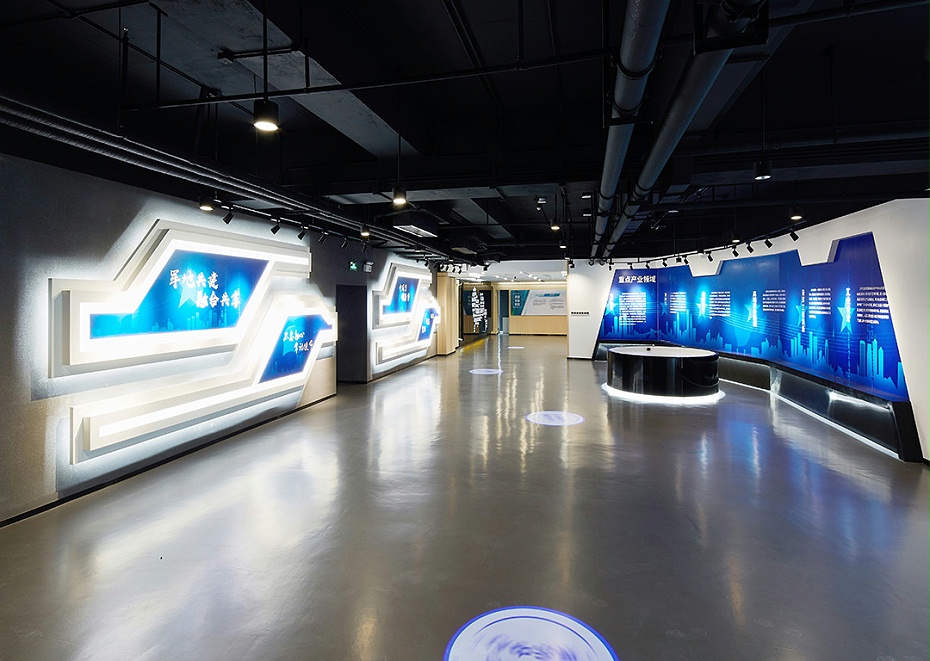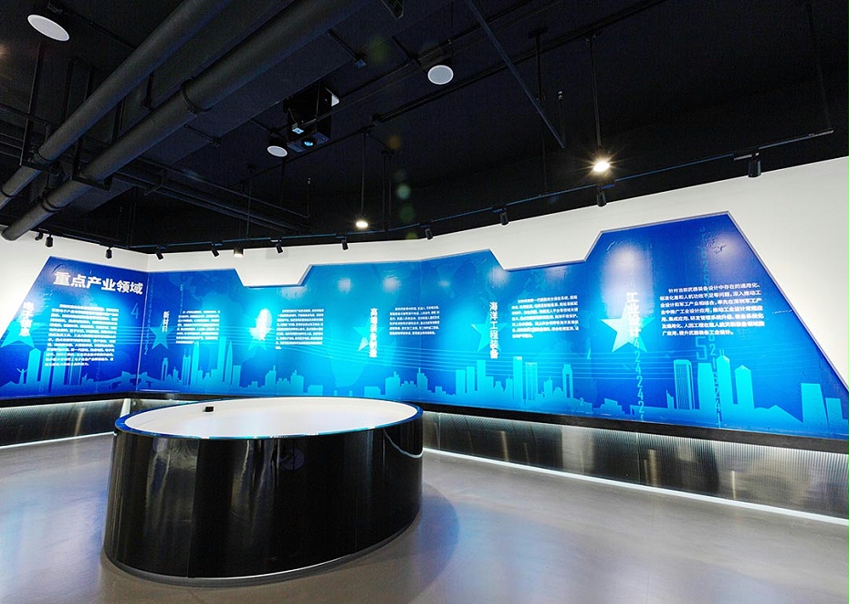 深圳展示設(shè)計公司哪家比較好?文豐裝飾設(shè)計師為軍民融合的設(shè)計方案是以展廳展示的產(chǎn)品文化和作用出發(fā),打造一個數(shù)字展廳特色的空間,將產(chǎn)品核心理念和展廳的設(shè)計主題相融合并表現(xiàn)出來。